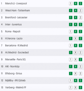Europatipset tips vecka 42 med en jackpot på ca 5 miljoner kronor! Otroliga Europatipset är tillbaka med ett helt otroligt utbud, det är nästintill galet och vi är beredda att faktiskt påstå att det kan vara den mest underhållande kupongen någonsin. United – Liverpool, Inter – Juve, Roma – Napoli, Barca – Real Madrid, bland annat! Och här menar vi verkligen bland annat, Marseille – PSG kan också nämnas, men även AIK – Peking och Atletico – Real Sociedad! Wow. Vi sparkar igång analysen – spelförslag och tips till alla 13 matcher! Lycka till.