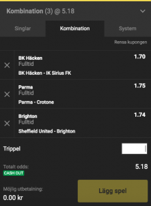 Fokus på matcherna Häcken – Sirius, Parma – Crotone och Sheffield United – Brighton när vi formar lördagens bästa trippel hos Unibet. Lycka till!