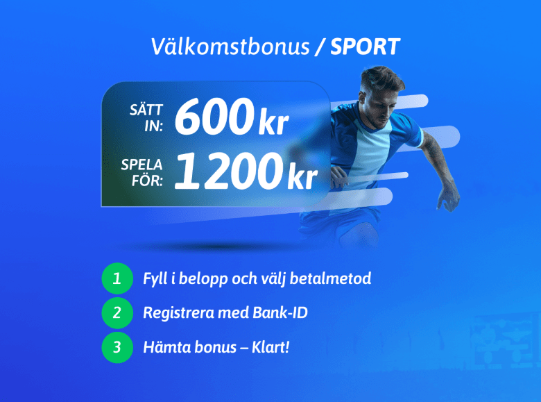 - Bonus måste omsättas 8 gånger på Sport min. odds 1.80.
