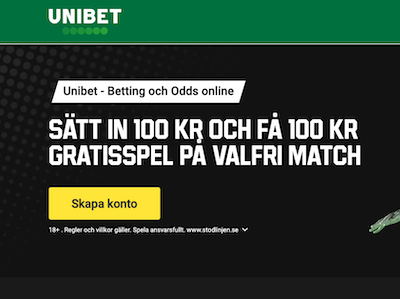 Vid en insättning av 100 kr ger Unibet dig 100 kr extra att spela för. Eventuell vinst är utan omsättningskrav. Gäller endast nya kunder.
